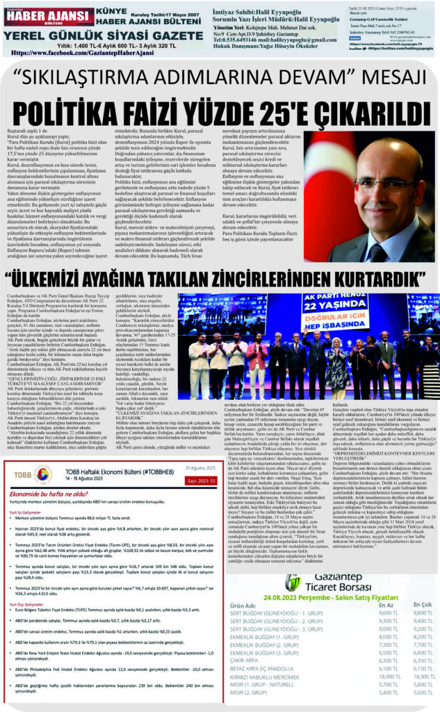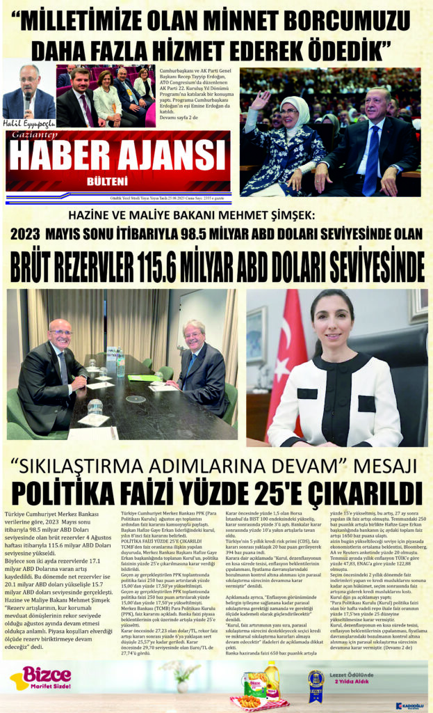 Gaziantep Haber Ajansı Bülteni Cuma 25.08.2023 e gazete