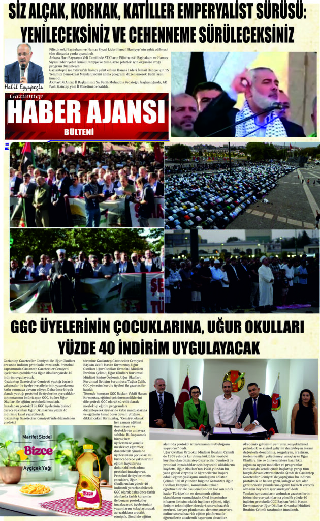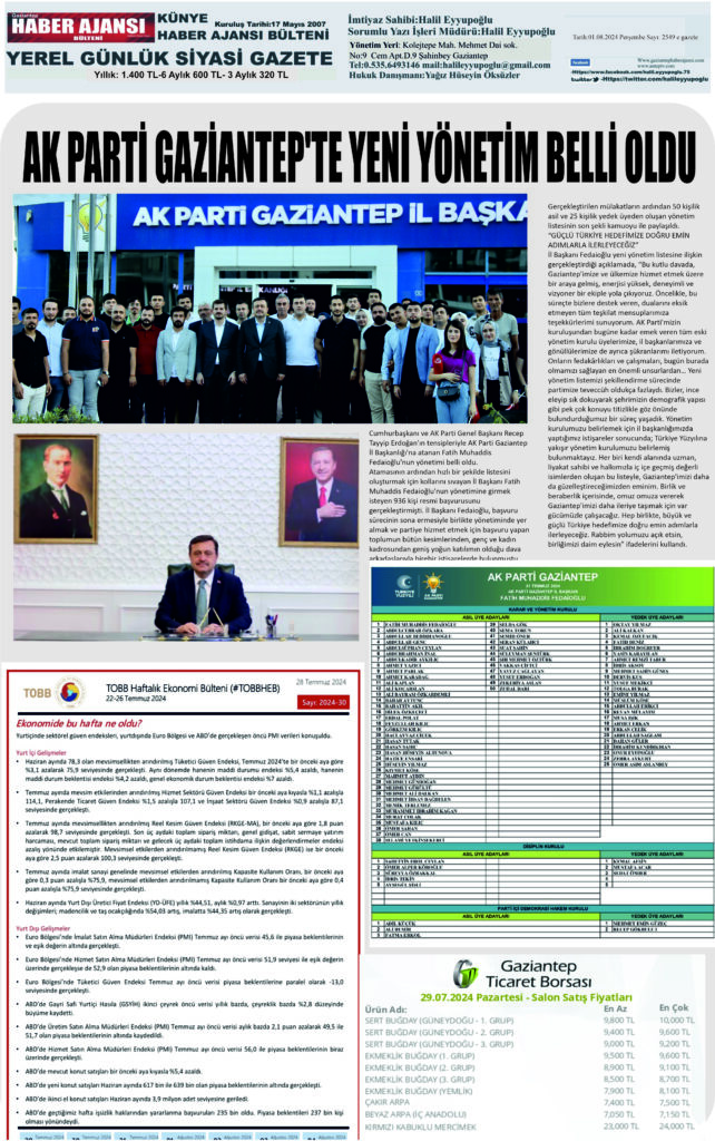 Gaziantep Haber Ajansı Bülteni Perşembe 01.08.2024 e gazete
