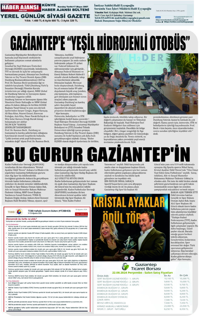 Yeşil Hidrojen Üreticileri Derneği H2DER Başkanı Yusuf Günay , Gaziantep Büyükşehir Belediyesi ve (İTÜ) İstanbul Teknik Üniversitesi işbirliği içeren projeye, Duisburg Yatırım ve Dış Ticaret Ajansı (DBI) sunumu ile hedef faydanın çok daha hızlı gerçekleşeceğini söyledi. Günay, “Bizler H2DER olarak değerli üyelerimiz ile birlikte, fayda üretecek, titizlikle takip ediyoruz. Bir değerli çalışmamız da Sanayi ve Teknoloji Bakanlığı ile başladı. Yeşil Hidrojen Özel Endüstri Bölgeleri ilan edilmesi için girişimimizi başlattık. Öncelikle iki bölge oluşabilir: Biri, rüzgar zenginliği ile Ege bölgesi, diğeri güneş çiçekleri ile Güneydoğu ya da Doğu Anadolu’da. Temiz elektrik, su kaynaklarına yakın çevredeki yeşil enerji üretimine yönlendirilecek. Üçlü protokolümüze, dördüncü girişimi yani Duisburg Yatırım Ajansı’nı katmak da çok değerli. Kamu yararı için, üniversite, STK ve belediyelerin işbirliği kaçınılmazdır. Prof. Beck v tüm heyete, önce ziyaretlerinden sonra sunulan işbirliğine teşekkür etti ” dedi.