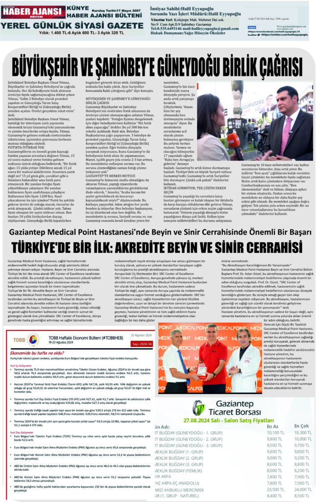 Gaziantep Haber Ajansı Bülteni Salı 27.08.2024 e gazete