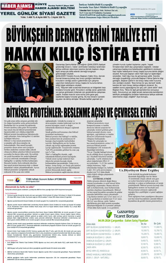 Gaziantep Haber Ajansı Bülteni Pazartesi 04.09.2024 e gazete