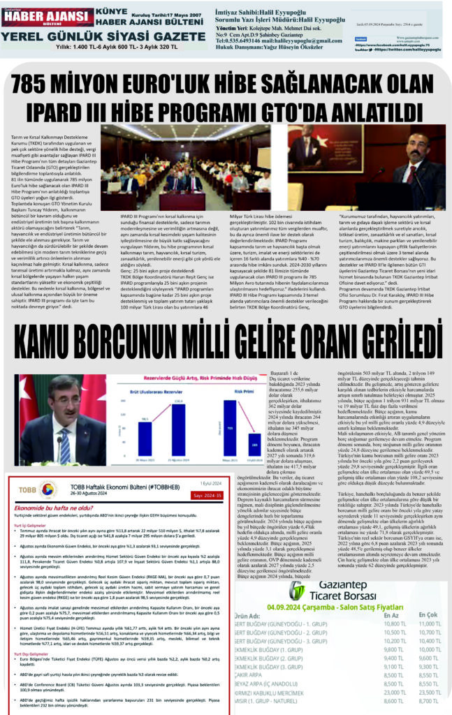 IPARD III Hibe Programı kapsamında 3 temel alanda yatırımcılara önemli destekler verileceğini belirten TKDK Bölge Koordinatörü Genç, “Kurumumuz tarafından, hayvancılık yatırımları, tarım ve gıdaya dayalı işleme sektörü ve kırsal alanlarda gerçekleştirilmek suretiyle arıcılık, bitkisel üretim, zanaatkârlık ve el sanatları, kırsal turizm, balıkçılık, makine parkları ve yenilenebilir enerji yatırımlarını kapsayan çiftlik faaliyetlerinin çeşitlendirilmesi olmak üzere 3 temel alanda yatırımcılarımıza önemli destekler sağlıyoruz. Bu destekler ve IPARD III’le ilgilenen bütün GTI üyelerini Gaziantep Ticaret Borsası’nın yeni idari hizmet binasında bulunan TKDK Gaziantep İrtibat Ofisine davet ediyoruz.” dedi.