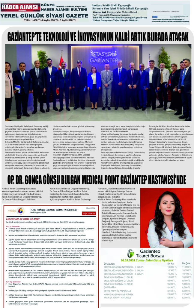 Gaziantep Haber Ajansı Bülteni Cuma 06.09.2024 e gazete