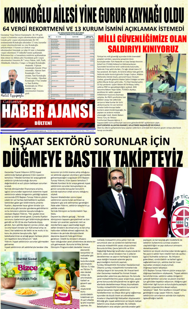 Gaziantep Haber Ajansı Bülteni Perşembe 24.10.2024 e gazete