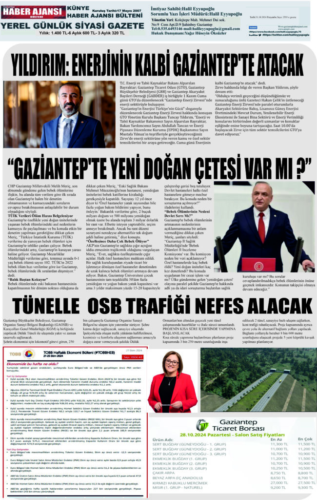 T.C. Enerji ve Tabii Kaynaklar Bakanı Alparslan Bayraktar; Gaziantep Ticaret Odası (GTO), Gaziantep Büyükşehir Belediyesi (GBB) ve Gaziantep Akaryakıt Bayileri Derneği (GABDER) iş birliğiyle 1 Kasım Cuma günü GTO’da düzenlenecek “Gaziantep Enerji Zirvesi”nde enerji sektörüyle buluşuyor.