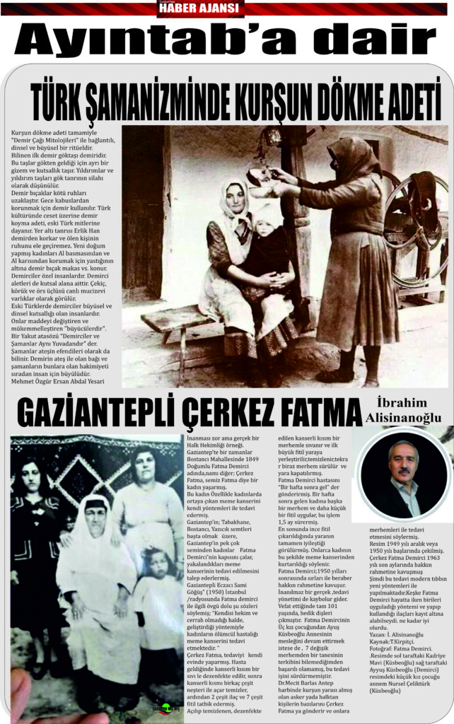Gaziantep’te bir zamanlar Bostancı Mahallesinde 1849 Doğumlu Fatma Demirci adında,namı diğer; Çerkez Fatma, semiz Fatma diye bir kadın yaşarmış.