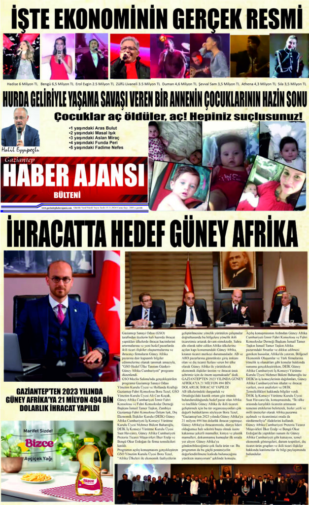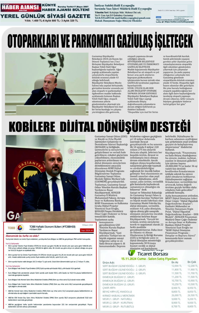 Gaziantep Haber Ajansı Bülteni Cuma 15.11.2024 e gazete