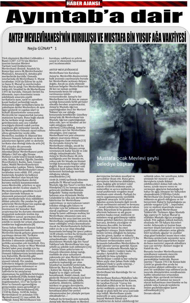 Yavuz Sultan Selim ve Kanuni Sultan Süleyman dönemlerinde de Mevlevîlik büyük gelişme göstererek yayılmaya devam etti. Tarikatın güneydoğu Anadolu’da yayılması devletin o dönemde izlediği resmî politika açısından çok önemliydi. Zira Maraş, Antep, Suriye ve Mısır Memluk Devleti’nden yeni alındığı için bu devletin buralardaki izlerinin silinip Osmanlı hâkimiyetinin kesinleşmesi için Halvetîlik, Mevlevîlik gibi tarikatların halk arasında yayılması siyaseti izlendi. Öte yandan Safevilerin bölgede yürüttükleri Şiilik propagandasının önlenmesi ve bölgede yerleşmeyi amaçlayan Safevilerin bu amaçlarına ulaşmaması bu politikada belirlenen diğer hedeflerdi.[9]Bu hedefe bağlı olarak Mevlevîlerin güneydoğuda örgütlenmeleri, 1517’de Suriye ve Mısır’ın Osmanlı egemenliğine girmesinden sonra gerçekleşti ve 1525’te Kilis Mevlevihanesi[10], 1530’da Halep, 1638’de Antep Mevlevihânesi ve ardından Urfa Mevlevîhanesi[11] inşa edildi. Bu bildiride Antep Mevlevîhanesi’nin kuruluşu, vakfiyesi ve şehrin sosyal ve ekonomik hayatındaki yeri incelenecektir. (Devam edecek)