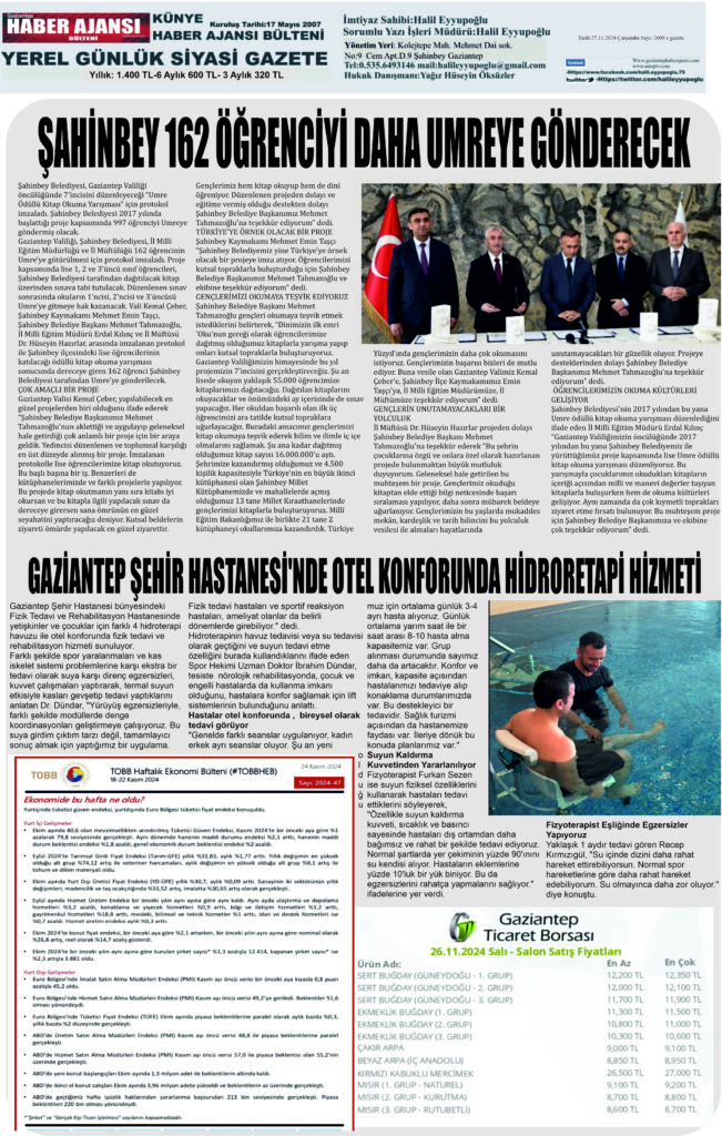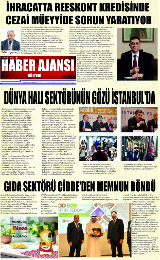 Gaziantep Haber Ajansı Bülteni Çarşamba 27.11.2024 e gazete