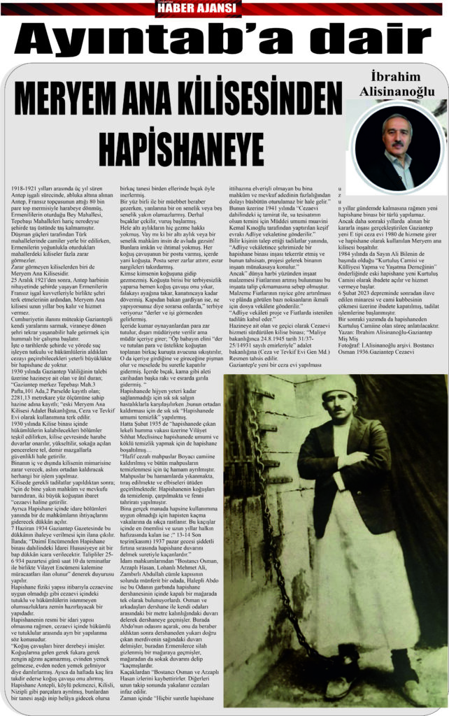 1930 yılında Gaziantep Valiliğinin talebi üzerine hazineye ait olan ve âtıl duran; “Gaziantep merkez Tepebaşı Mah.3 Pafta,101 Ada,2 Parselde kayıtlı olan; 2281,13 metrekare yüz ölçümüne sahip hazine adına kayıtlı; “eski Meryem Ana Kilisesi Adalet Bakanlığına, Ceza ve Tevkif Evi olarak kullanımına terk edilir.