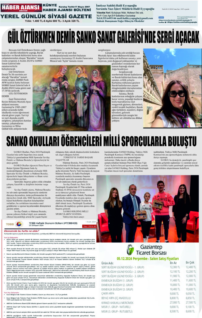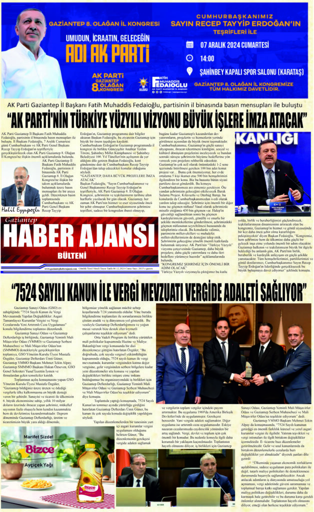 Gaziantep Haber Ajansı Bülteni Cuma 06.12.2024 e gazete