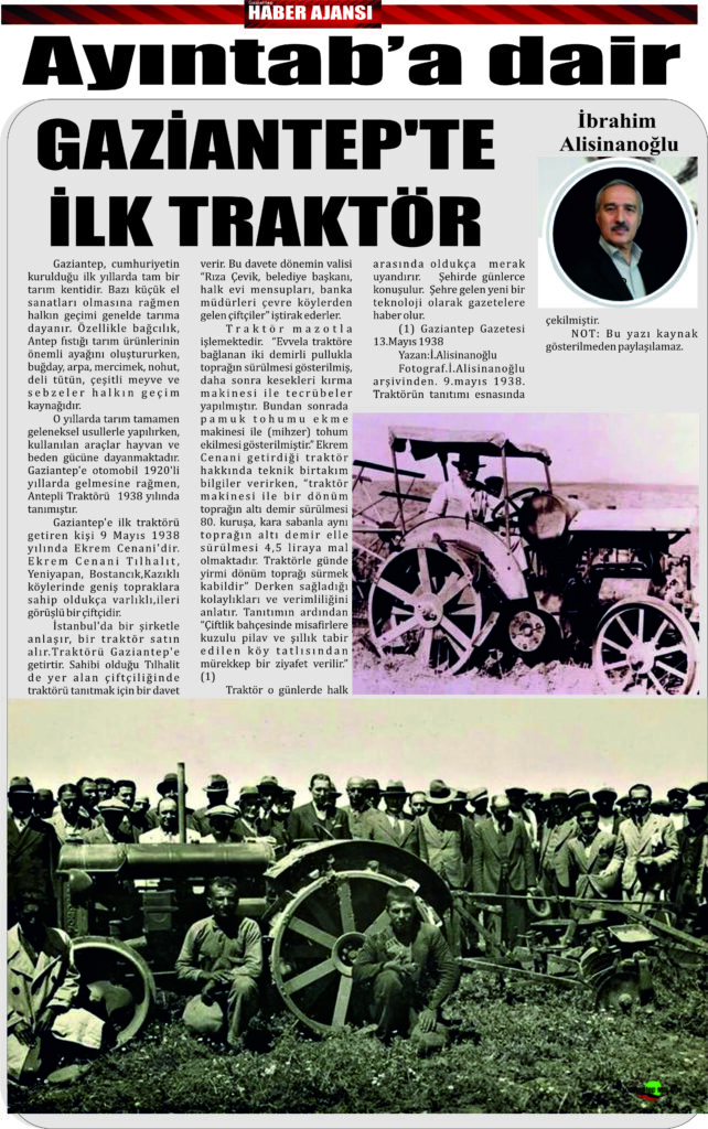 (1) Gaziantep Gazetesi 13.Mayıs 1938
