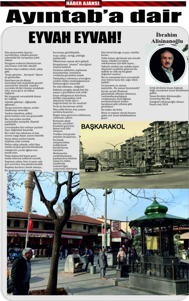 Eyvah, eyvah! Maalesef günümüzde öfkemiz aklımızın, vurdumduymazlığımız vicdanımızın, benciliğimiz merhametimizin üstüne karabasan gibi çökmüş gibi gözüküyor.