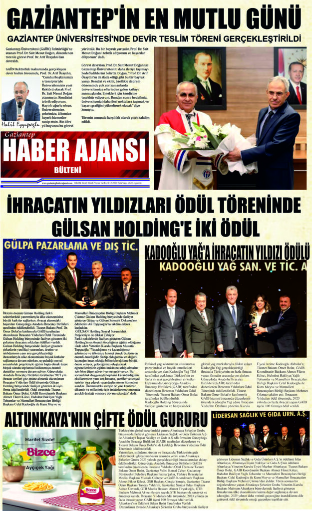 Yatırımları, istihdamı, üretim ve ihracatıyla Türkiye’nin gıda sektöründeki global markaları arasında yerini alan Altunkaya Şirketler Grubu 2023 yılında gerçekleştirdiği ihracatlarından dolayı ödüllendirildi. Güneydoğu Anadolu İhracatçı Birlikleri (GAİB) tarafından düzenlenen İhracatın Yıldızları Ödül Törenine Ticaret Bakanı Ömer Bolat, Gaziantep Valisi Kemal Çeber, Gaziantep Büyükşehir Belediye Başkanı Fatma Şahin, Türkiye İhracatçılar Meclisi Başkanı Mustafa Gültepe ve GAİB Koordinatör Başkanı Ahmet Fikret Kileci, OSB Başkanı Cengiz Şimşek, Gaziantep Ticaret Odası Başkanı Tuncay Yıldırım, Gaziantep Sanayi Odası Başkanı Adnan Ünverdi, GTB Meclis Başkanı Ahmet Tiryakioğlu, GTB Başkanı Mehmet Akıncı ile çok sayıda STK başkanıyla sanayici ve ihracatçı katıldı. İhracatın Yıldızları ödül töreninde, 2023 yılında en fazla ihracat yapan GAİB üyesi 100 firmaya ödül verildi.