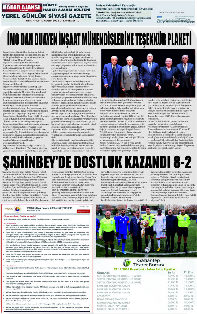 İnşaat Mühendisleri Odası Gaziantep Şubesi tarafından düzenlenen törende, meslekte 25, 40, ve 50. yılını dolduran inşaat mühendislerine “Plaket ve Onur Belgesi” verildi.