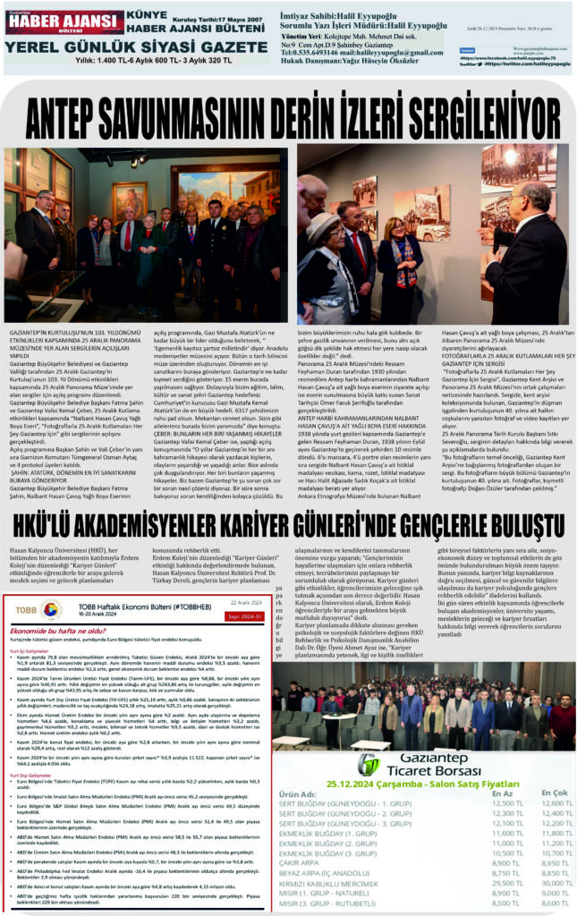 Gaziantep Büyükşehir Belediyesi ve Gaziantep Valiliği tarafından 25 Aralık Gaziantep’in Kurtuluş’unun 103. Yıl Dönümü etkinlikleri kapsamında 25 Aralık Panorama Müze’sinde yer alan sergiler için açılış programı düzenlendi.