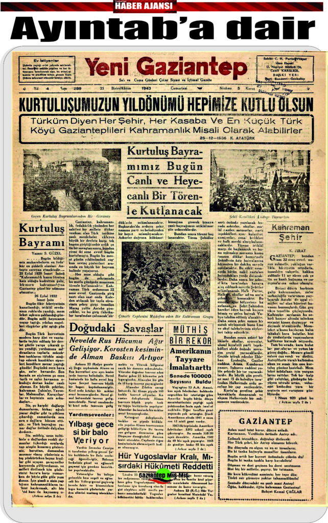 “AYINTAB’IN ZAFERİ, TÜM ANADOLU’NUN İSTİKBALİNİ KURTARMIŞTIR”
