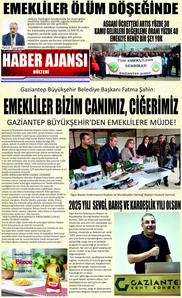 Gaziantep Haber Ajansı Bülteni Salı 31.12.2024 e gazete