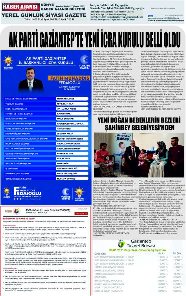 Gaziantep Haber Ajansı Bülteni Salı 07.01.2024 e gazete
