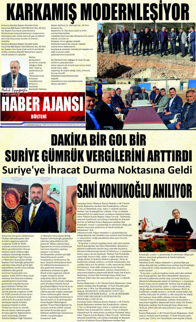 Karkamış Belediye Başkanı Mustafa Güzel; Gaziantep BŞB Başkan Vekili Mehmet Haz, AK Parti İlçe Başkanı Hacı Ayvaz Çiçek ve birim amirleriyle birlikte; Karkamış Mahalle Muhtarlarını ziyaret ederek taleplerini topladılar.