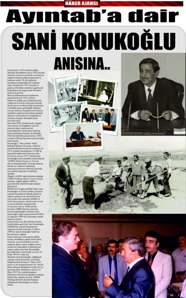 Anma programına SANKO Holding Onursal Başkanı Abdulkadir Konukoğlu, Yönetim Kurulu Başkanı Adil Sani Konukoğlu, GSO Yönetim Kurulu Başkanı Adnan Ünverdi, Sami, Hakan, Cengiz, Yiğitcan, Alperen Sani Konukoğlu, GSO Meclis ve Yönetim Kurulu Üyeleri, Konukoğlu Ailesi, sanayiciler, SANKO çalışanları ve emeklileri katıldı.