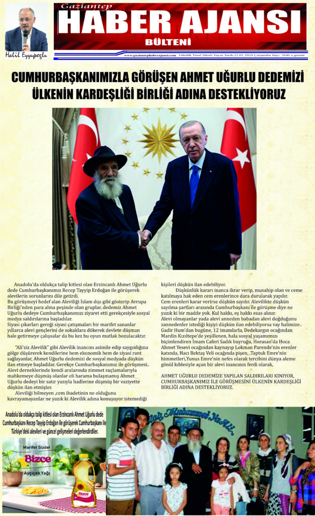 “Ali’siz Alevilik” gibi Alevilik inancını asimile edip saygınlığına gölge düşürerek kendilerine hem ekonomik hem de siyasi rant sağlayanlar, Ahmet Uğurlu dedemizi de sosyal medyada düşkün ilan etmeye başladılar. Gerekçe Cumhurbaşkanımız ile görüşmesi..