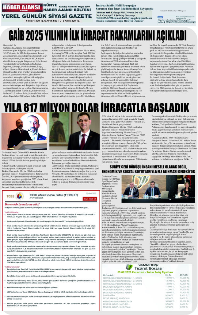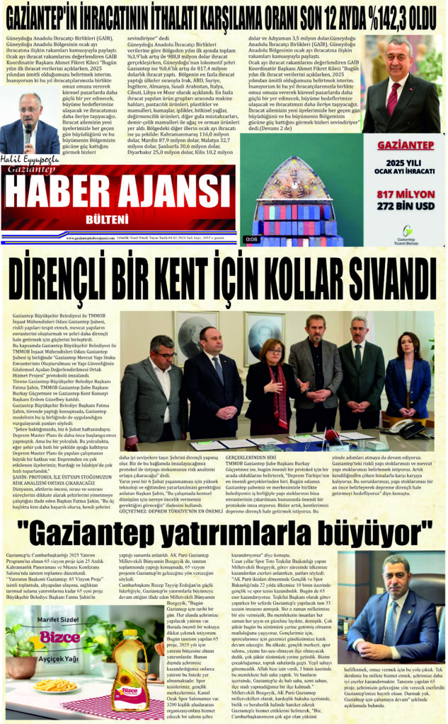 Gaziantep Haber Ajansı Bülteni Salı 04.02.2024 e gazete