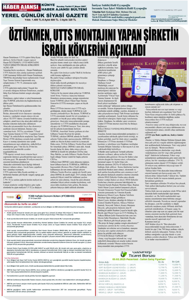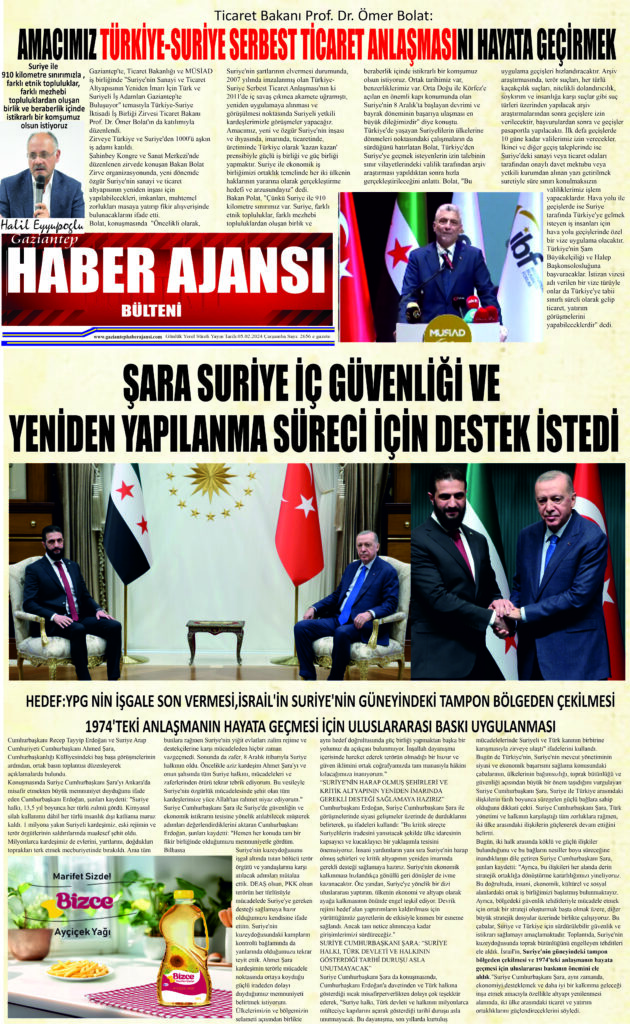 Gaziantep Haber Ajansı Bülteni Çarşamba 05.02.2024 e gazete