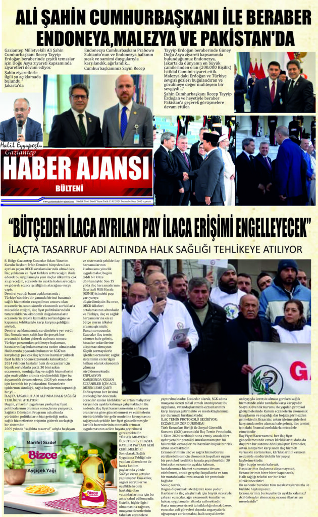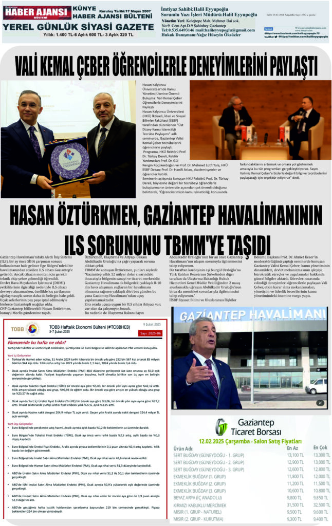 Gaziantep Haber Ajansı Bülteni Perşembe 13.02.2024 e gazete