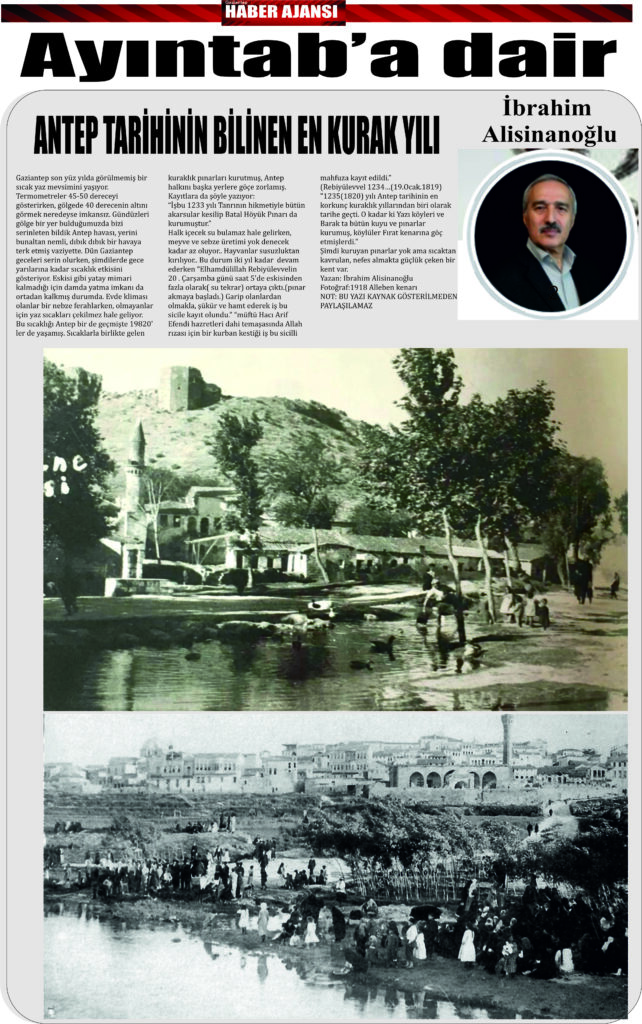 ANTEP TARİHİNİN BİLİNEN EN KURAK YILI(Gaziantep miş miş sayfasından Sn İbrahim Alisinanoğlunun paylaşımından kopyalanmıştır)