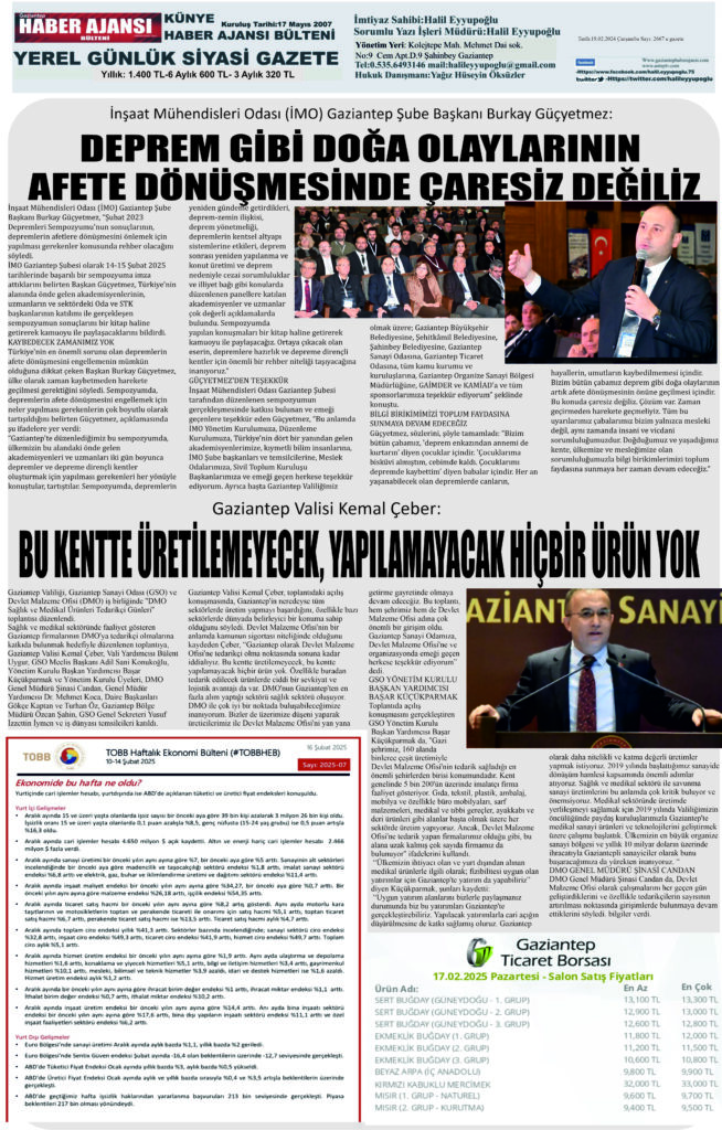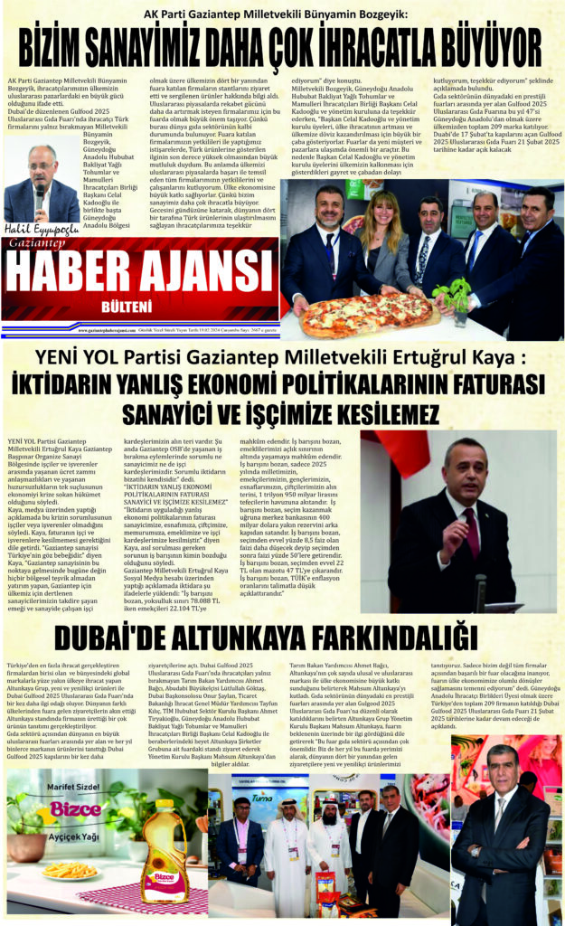 admin | 18 Şubat 2025 | e gazete Gaziantep haber ajansı Bülteni, Ekonomi, Genel, Gündem, Tüm Manşetler A- A+