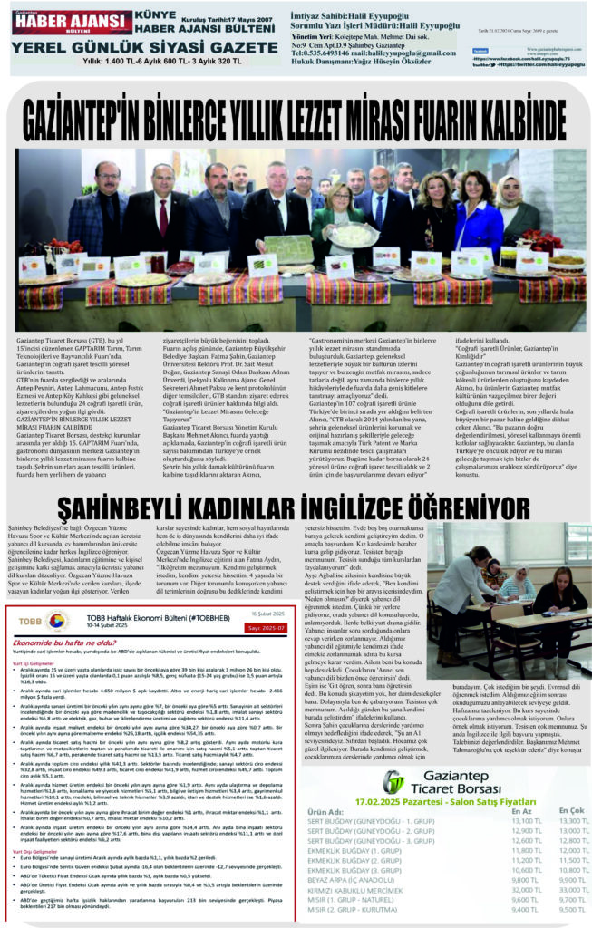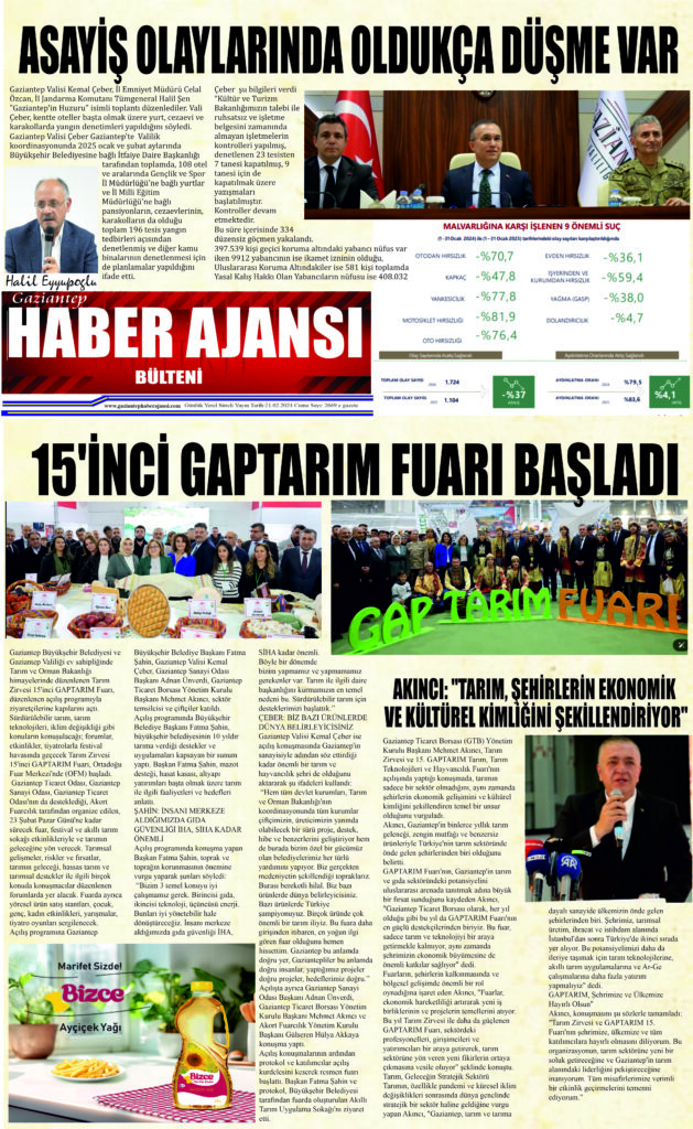 Gaziantep Haber Ajansı Bülteni Cuma 21.02.2024 e gazete