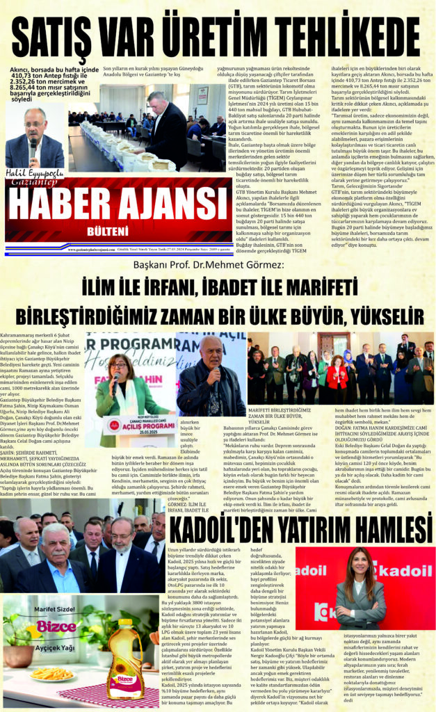 Gaziantep Haber Ajansı Bülteni Perşembe 27.03.2024 e gazete