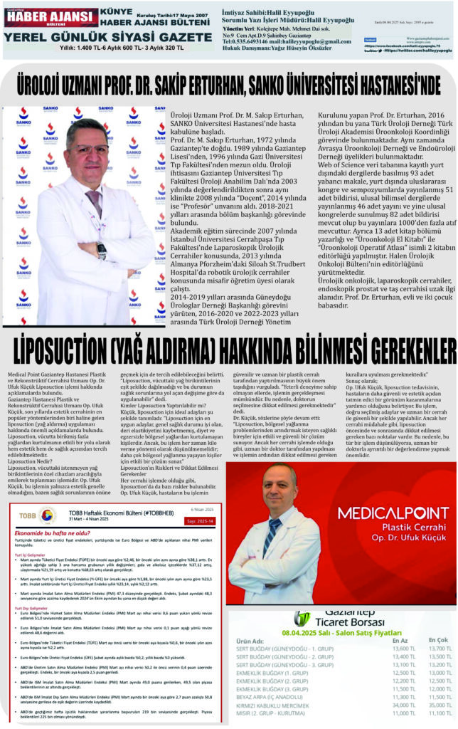 Gaziantep Haber Ajansı Bülteni Salı 08.04.2025 e gazete