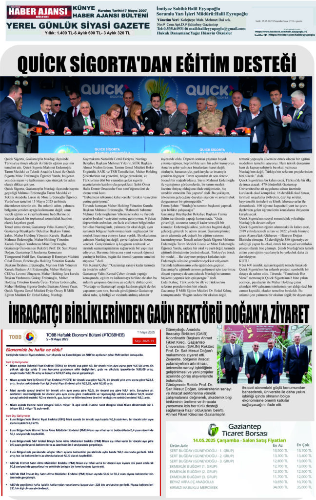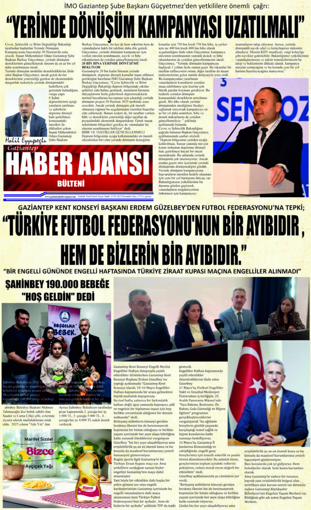 Gaziantep Haber Ajansı Bülteni Perşembe 15.05.2025 e gazete