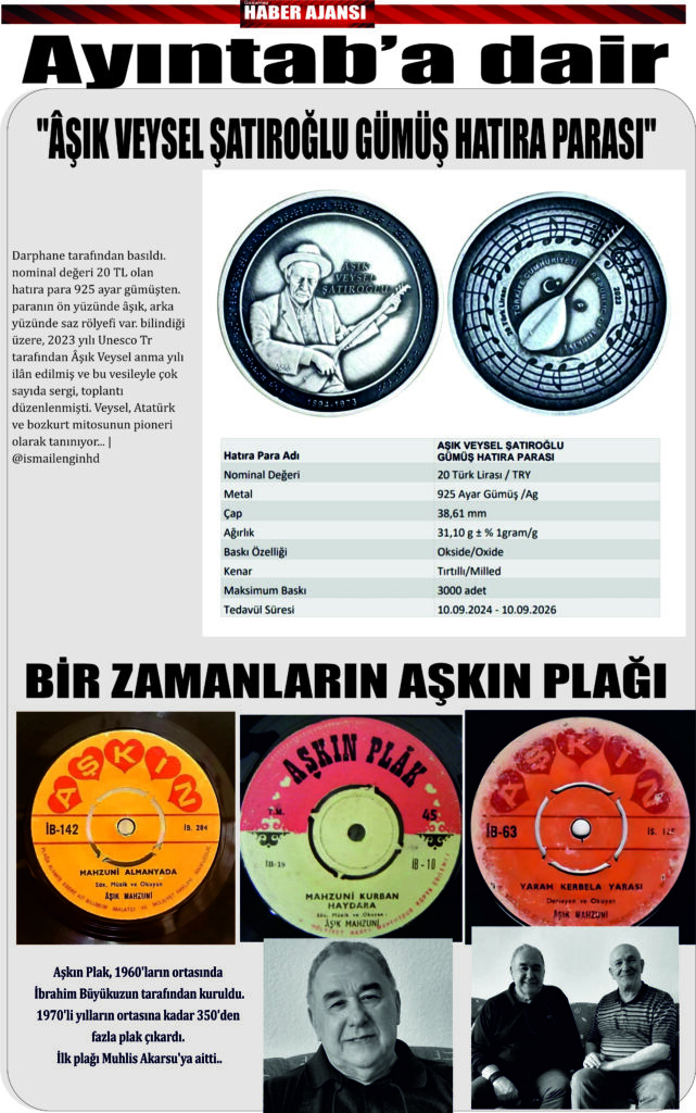 Darphane tarafından basıldı. nominal değeri 20 TL olan hatıra para 925 ayar gümüşten. paranın ön yüzünde âşık, arka yüzünde saz rölyefi var. bilindiği üzere, 2023 yılı Unesco Tr tarafından Âşık Veysel anma yılı ilân edilmiş ve bu vesileyle çok sayıda sergi, toplantı düzenlenmişti. Veysel, Atatürk ve bozkurt mitosunun pioneri olarak tanınıyor… | @ismailenginhd