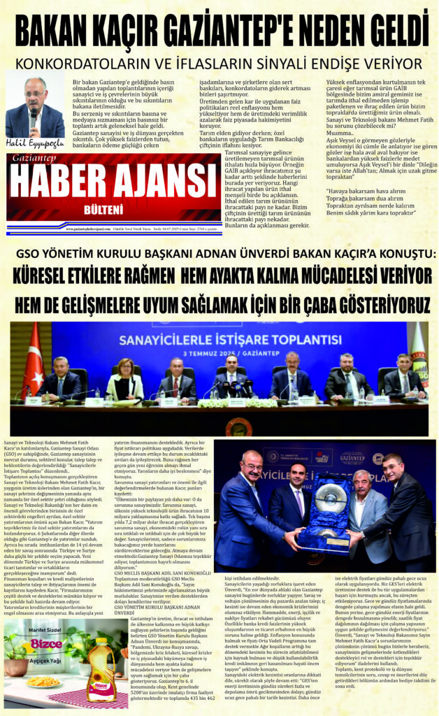 Gaziantep Haber Ajansı Bülteni Cuma 04.07.2025 e gazete