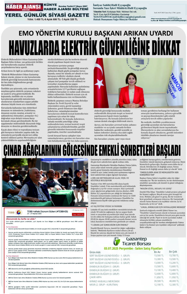 admin | 04 Temmuz 2025 | e gazete Gaziantep haber ajansı Bülteni, Ekonomi, Genel, Gündem, Tüm Manşetler A- A+