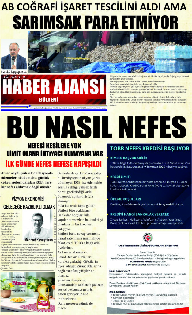 Gaziantep Haber Ajansı Bülteni Perşembe 10.07.2025 e gazete