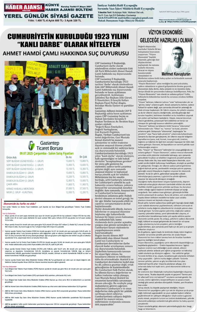 admin | 10 Temmuz 2025 | e gazete Gaziantep haber ajansı Bülteni, Ekonomi, Genel, Gündem, HALİL EYYUPOĞLU Köşe Yazısı, Köşe Yazıları, Tüm Manşetler