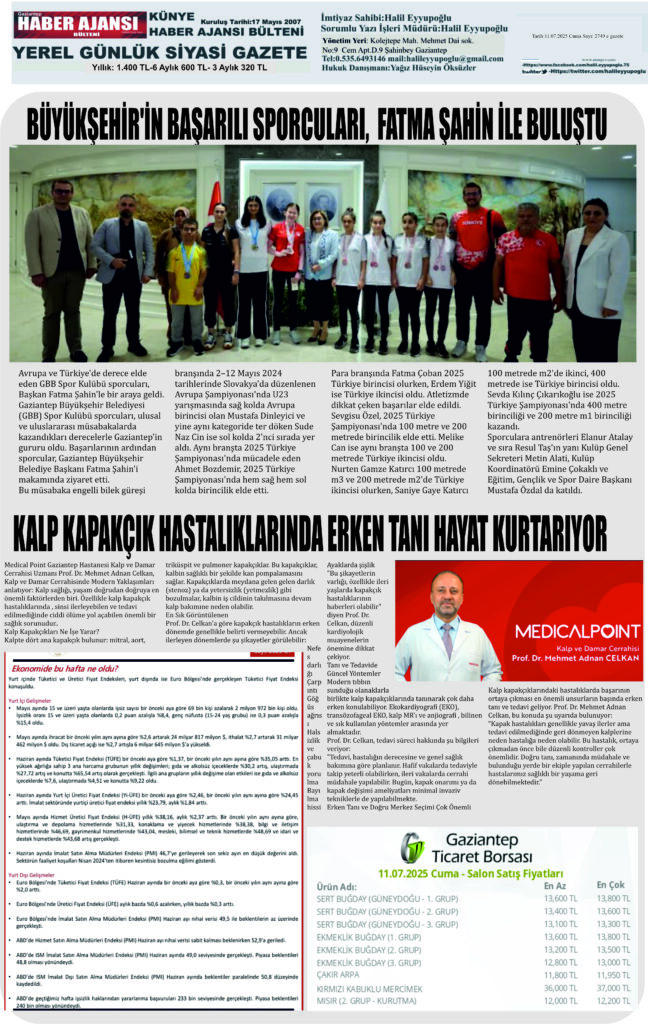 Gaziantep Haber Ajansı Bülteni Cuma 11.07.2025 e gazete