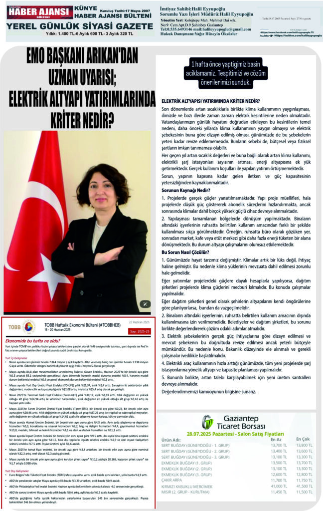 admin | 28 Temmuz 2025 | e gazete Gaziantep haber ajansı Bülteni, Ekonomi, Genel, Gündem, HALİL EYYUPOĞLU Köşe Yazısı, Köşe Yazıları, Tüm Manşetler