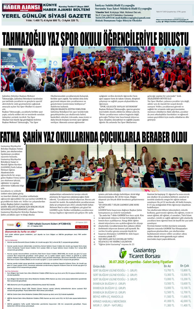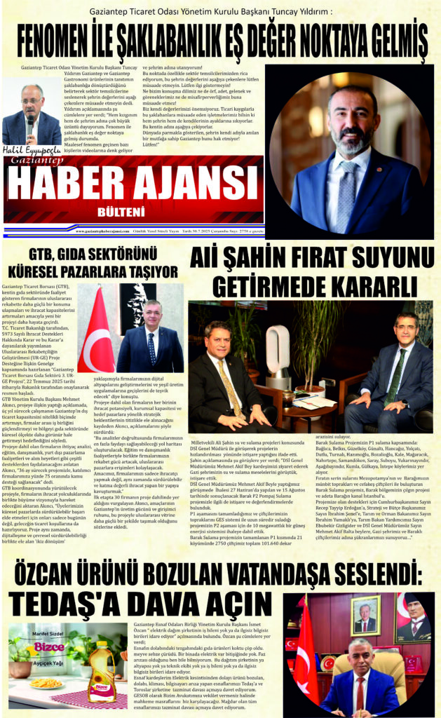 Gaziantep Haber Ajansı Bülteni Çarşamba 30.07.2025 e gazete