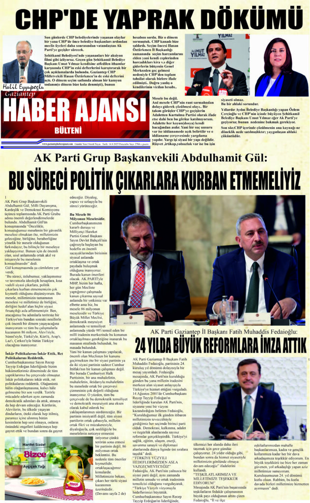 Şehitkaml Belediyesi’nde yaşananları bir aksiyon filmi gibi izliyoruz. Geçen gün Şehitkamil Belediye Başkanı Umut Yılmaz kendisine atfedilen ithamlar karşısında CHP’in eski defterlerini karıştırarak bir çok açıklamalarda bulundu. Gaziantep CHP Milletvekili Hasan Öztürkmen’in de eski defterini açtı. O dönem seçim sathında alınan bir kamyon sodanın(o dönem bize kola denmişti), bunun hesabını sordu. Biz o dönem sormuştuk. CHP kanadı bize saldırdı. Seçim öncesi Hasan Öztürkmen İl Başkanlığı zamanında  seçim harcamlarını elden yani kendi ceplerinden harcadıkları kira v.s diğer giderlerin bütçenin Genel Merkezden geç gelmesi nedeniyle CHP’den toplam tahsilat olarak bizlere ifade edilmişti.. Doğru yanlış o kendilerinin vicdan hesabı..
