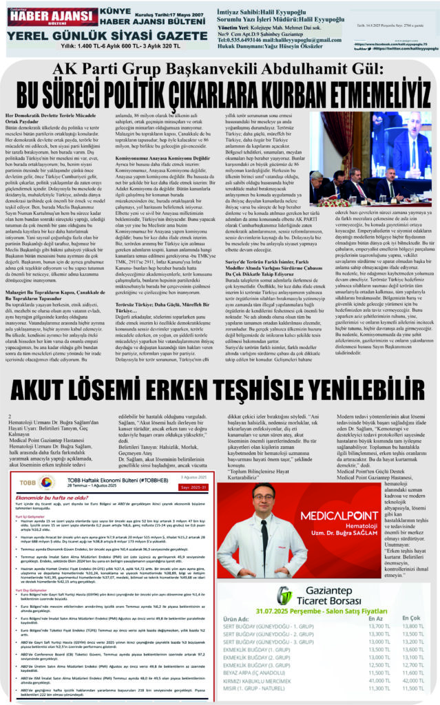admin | 14 Ağustos 2025 | e gazete Gaziantep haber ajansı Bülteni, Ekonomi, Foto Galeri, Genel, Gündem, HALİL EYYUPOĞLU Köşe Yazısı, Köşe Yazıları, Tüm Manşetler
