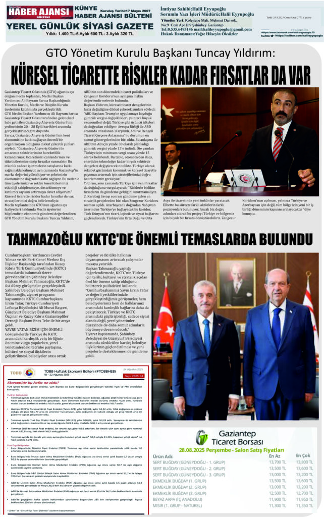 admin | 29 Ağustos 2025 | e gazete Gaziantep haber ajansı Bülteni, Ekonomi, Genel, Gündem, HALİL EYYUPOĞLU Köşe Yazısı, Köşe Yazıları, Tüm Manşetler