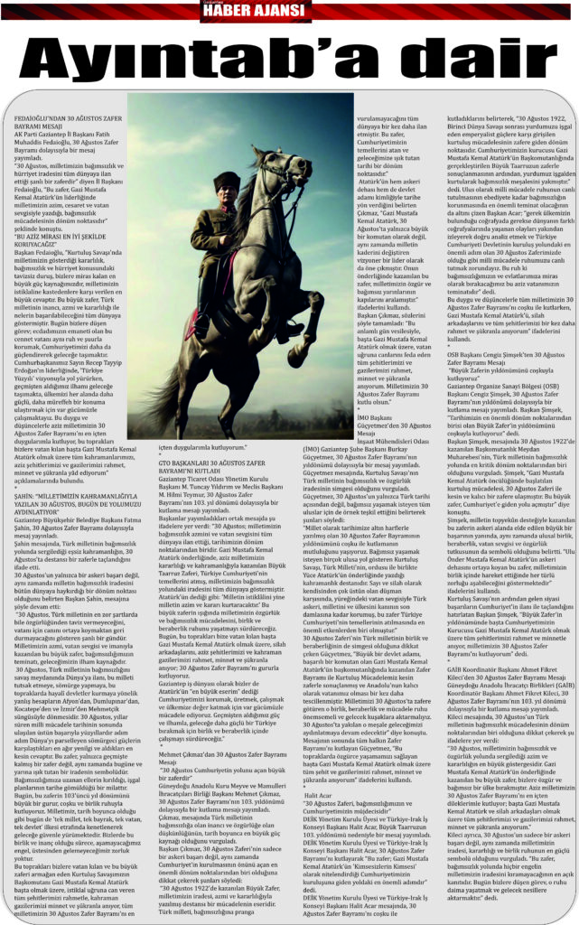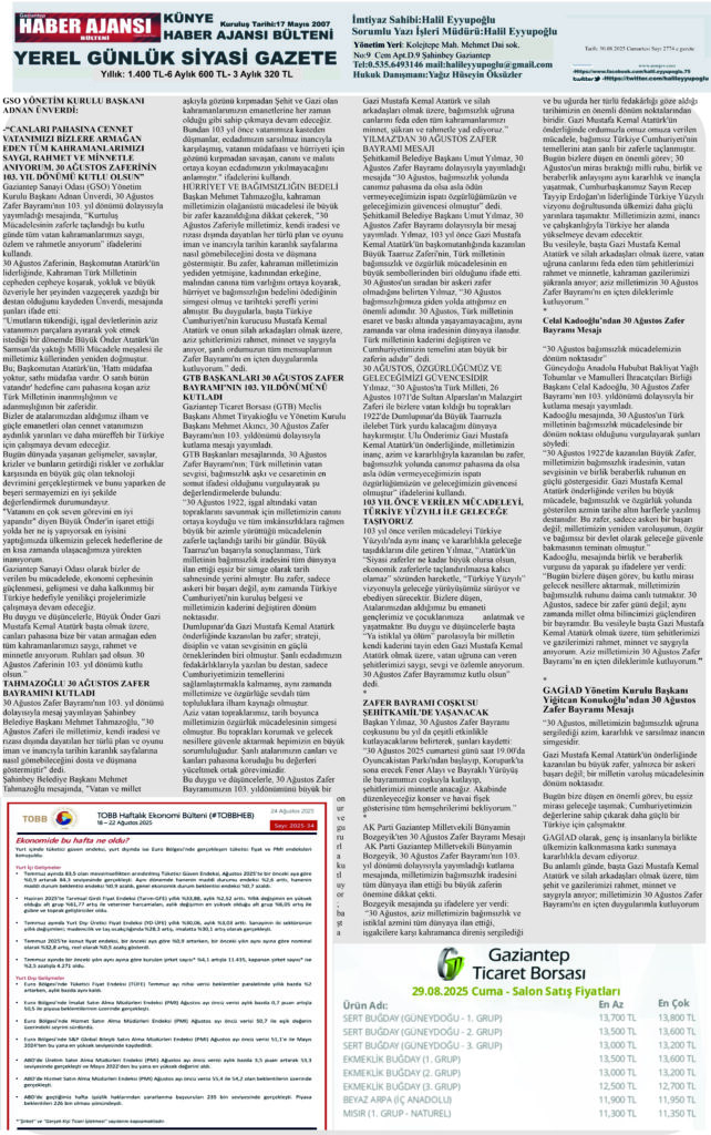 Gaziantep Haber Ajansı Bülteni Cumartesi 30.08.2025 e gazete