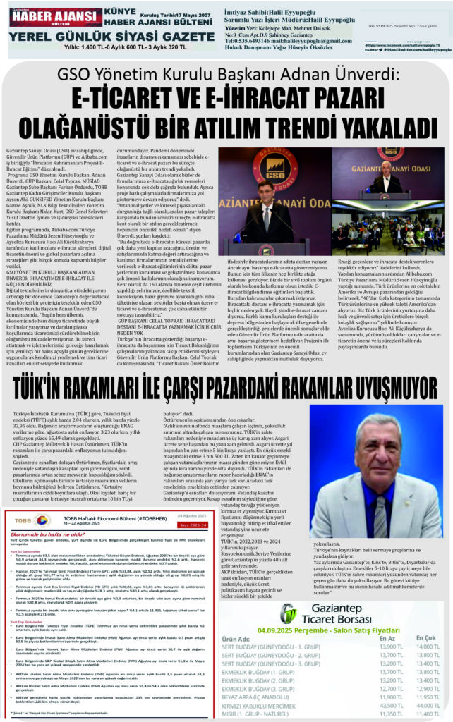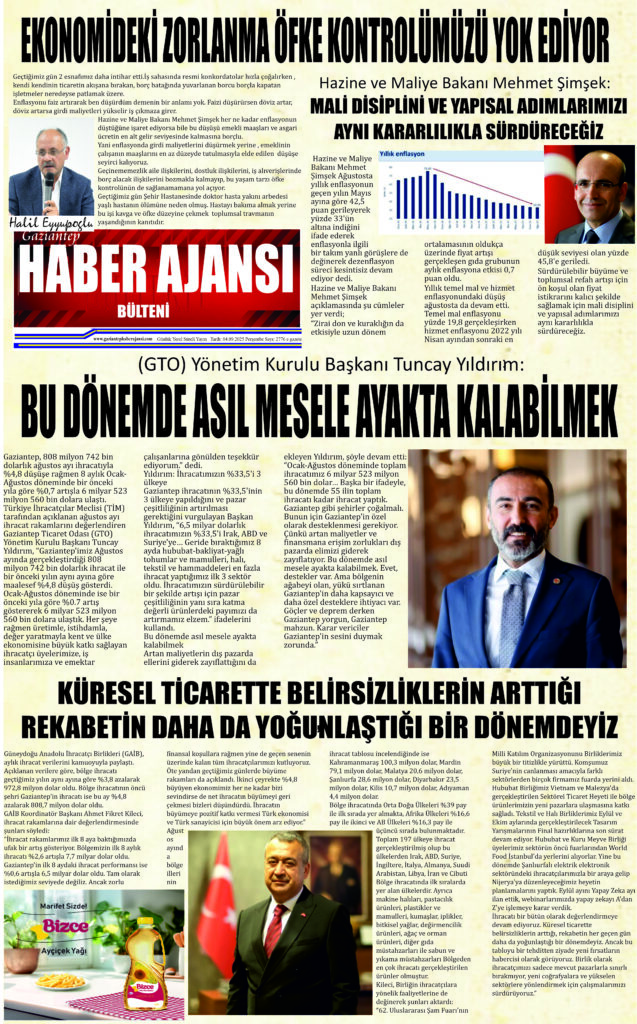 Gaziantep Haber Ajansı Bülteni Perşembe 04.09.2025 e gazete