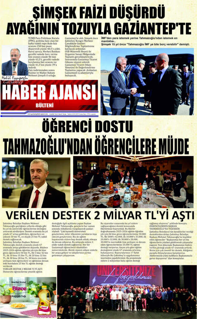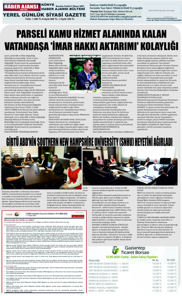 Gaziantep Haber Ajansı Bülteni Cuma 12.09.2025 e gazete