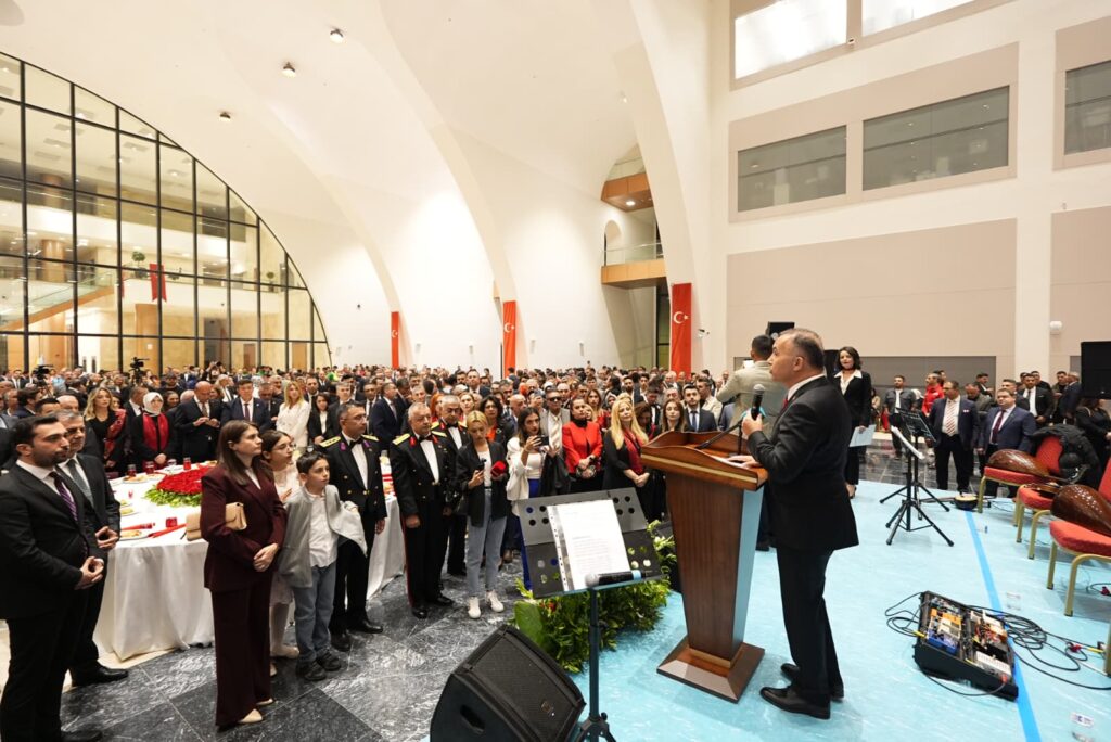 Saygı duruşu ve İstiklal Marşı’nın okunmasıyla devam eden törende konuşan Çeber, Cumhuriyet’in önemini anlattı. Tören, jandarma komando birliğinin gösterisi ve güvenlik birimlerinin geçidiyle sonlandı.